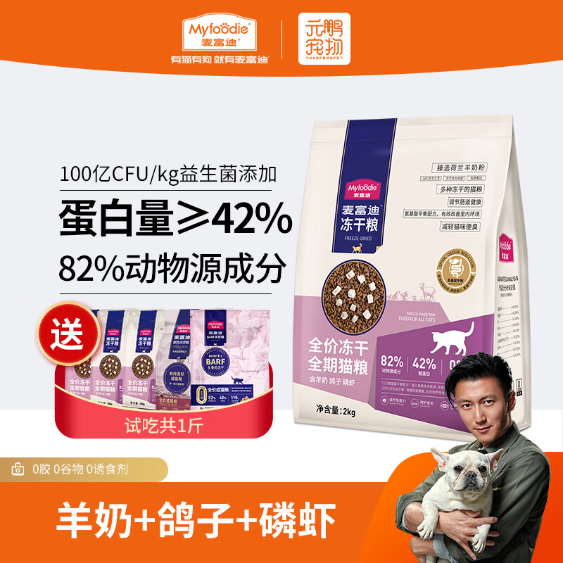 麦富迪全价冻干猫粮 成猫幼猫全期通用无谷粮 羊奶鸽子磷虾配方2kg
