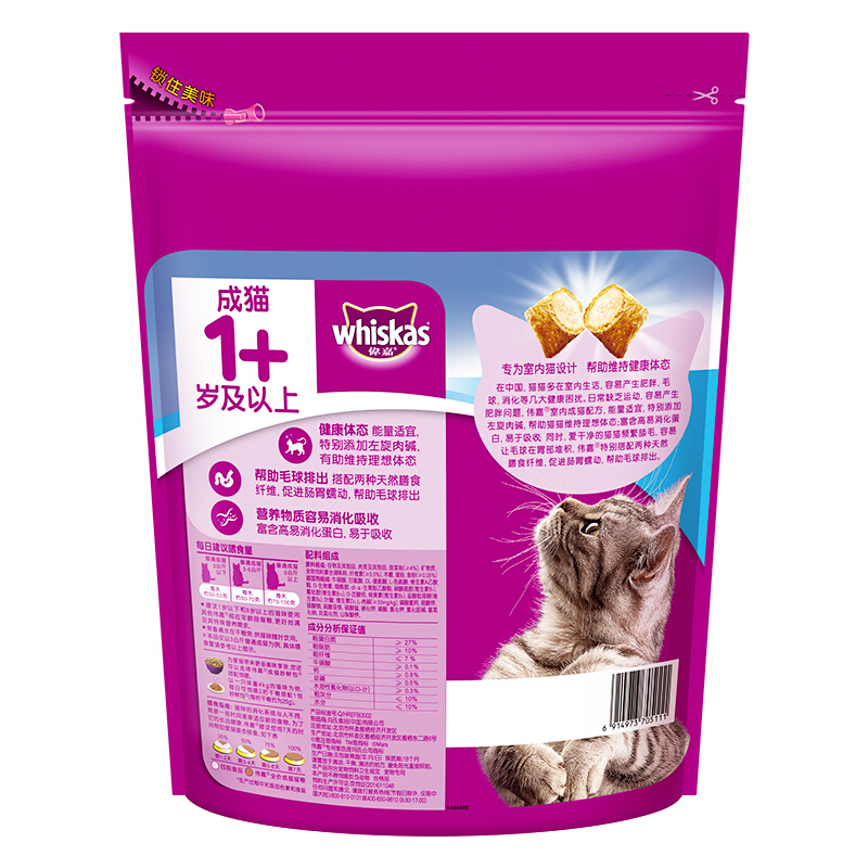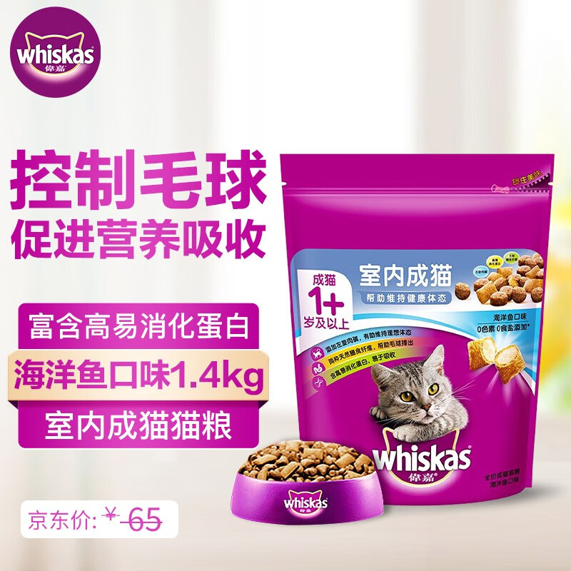 伟嘉(whiskas) 猫粮成猫布偶蓝猫橘猫加菲英短全价粮 室内猫海洋鱼口味1.4kg