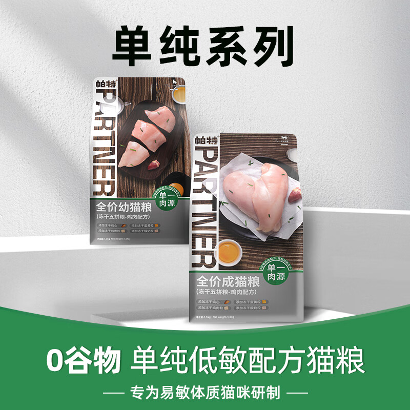 帕特猫粮试吃冻干鸡肉兔肉牛肉配方风干烘焙成幼猫主粮袋装 五拼幼猫-鸡肉低敏-200.g 0.Lb (试吃尝鲜)