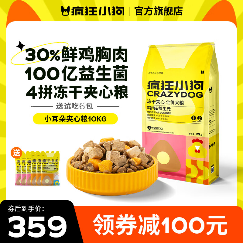疯狂小狗小耳朵冻干夹心狗粮泰迪比熊中小型幼成犬通用多拼 呵护肠胃|鸡肉益生元10kg