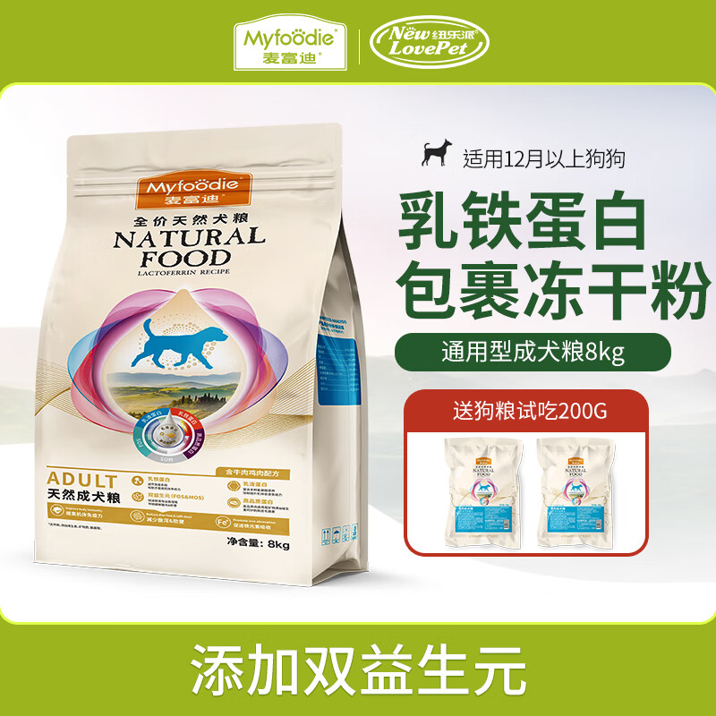 麦富迪乳铁蛋白狗粮 通用型营养天然犬粮 成犬粮8kg