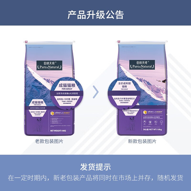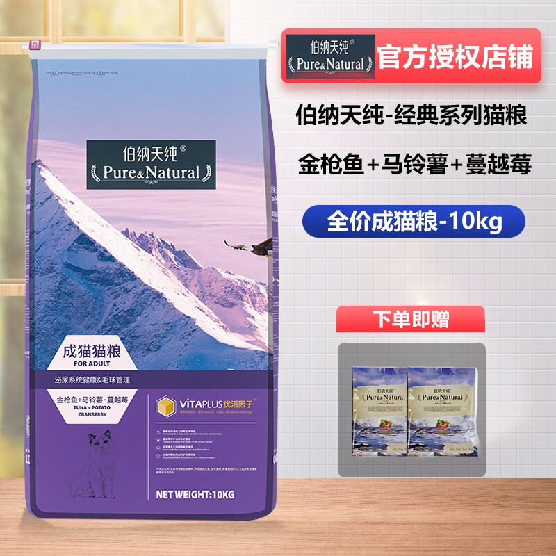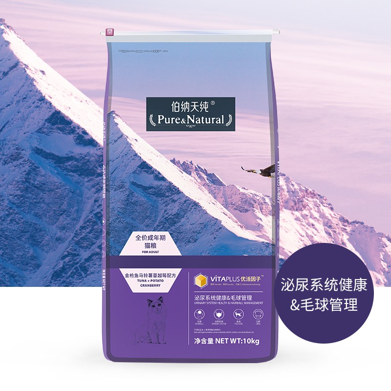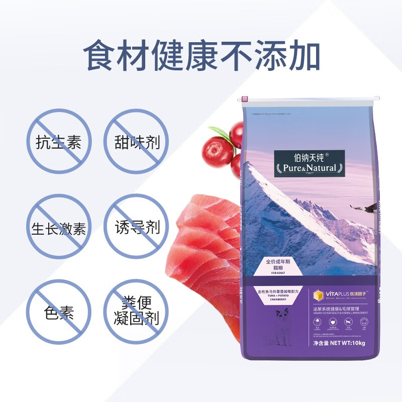 伯纳天纯猫粮 无谷成猫宠物猫粮 泌尿系统健康毛球管理配方英短美短蓝猫加菲布偶全猫通用猫粮 成猫经典无谷10KG