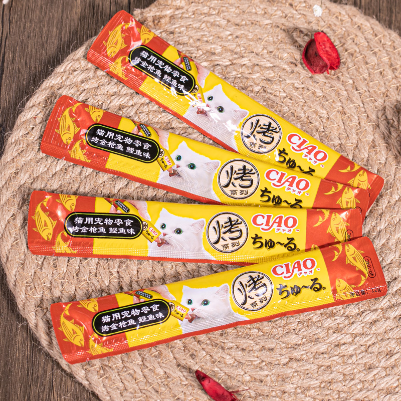 伊纳宝猫用宠物零食 烤系列猫条猫果冻 海洋鱼流质肉泥湿粮猫零食 鲣鱼味整箱4R-104C