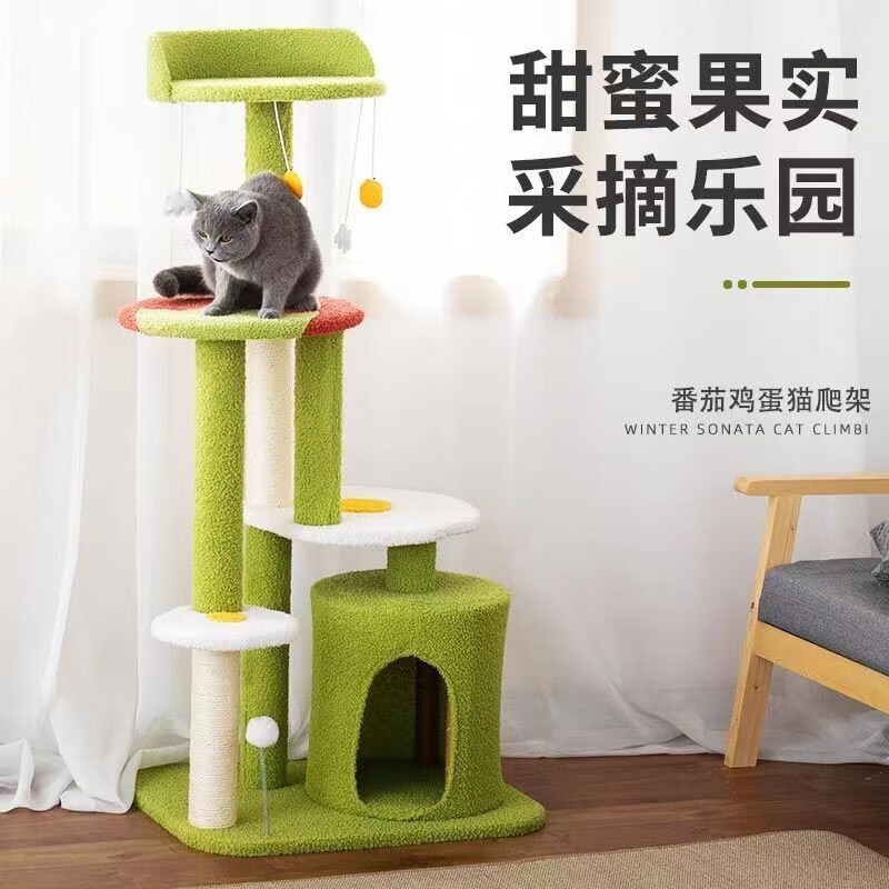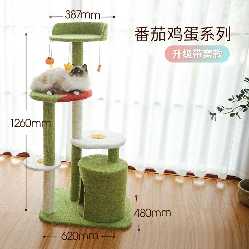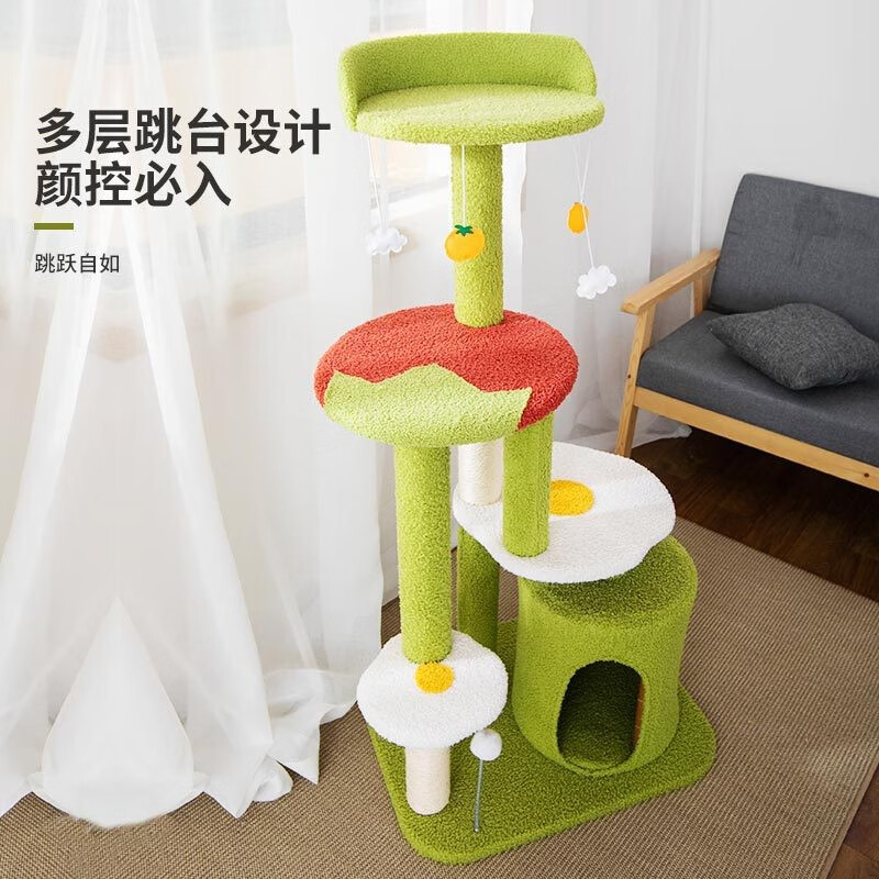 猫爬架带窝猫窝冬天季小户型猫架子多跳台剑麻猫抓板通天柱一体猫抓柱猫玩具猫屋猫咪用品 优百客 番茄鸡蛋款【1.26米5层带窝 吊球】