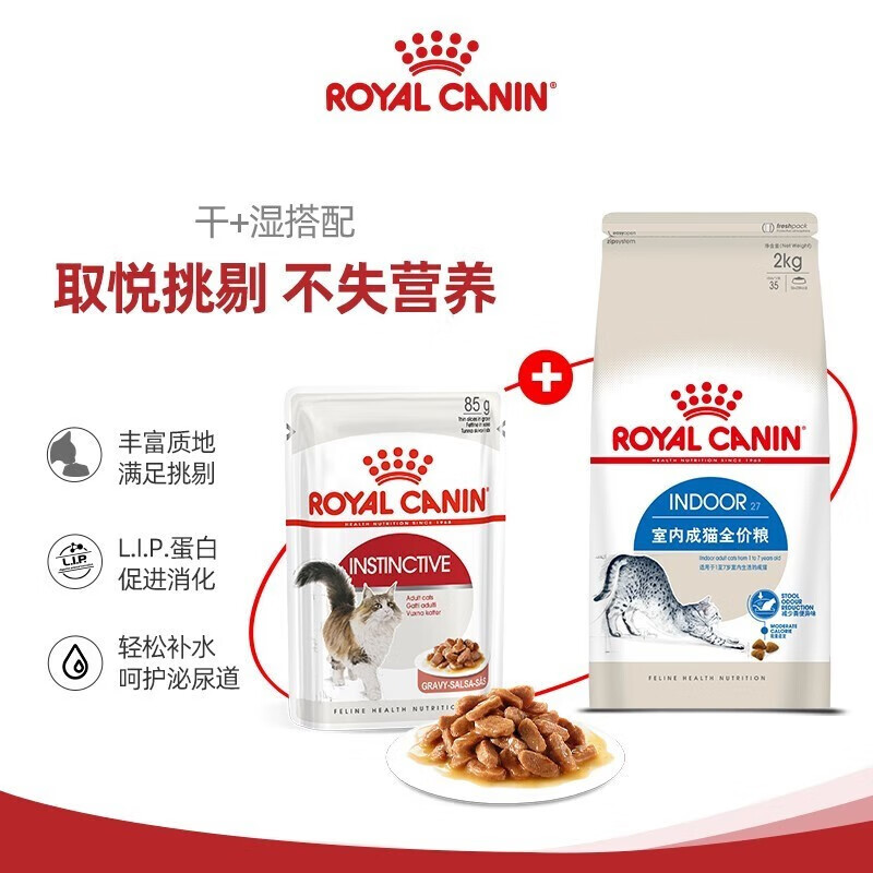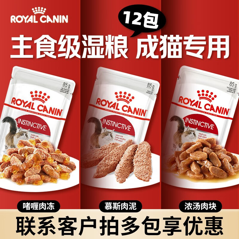 皇家(ROYAL CANIN)猫零食进口皇家主食湿粮包全价猫粮湿粮罐头软包猫适用 成猫用慕斯肉泥85g*12
