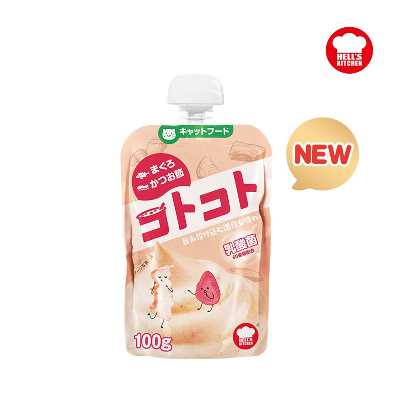 Hell's kitchen地狱厨房咕噜酱猫条猫零食成猫幼猫猫咪零食罐头湿粮适口添加乳酸菌营养补充 金枪鱼柴鱼100g*6袋