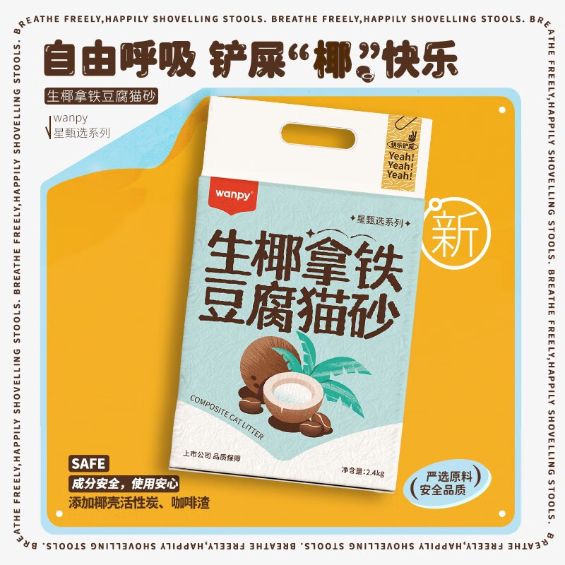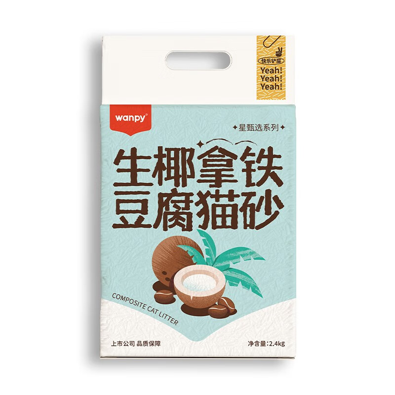 顽皮(wanpy)猫砂生椰拿铁豆腐混合猫砂结团速溶可冲厕所 星甄选系列2.4kg*1袋