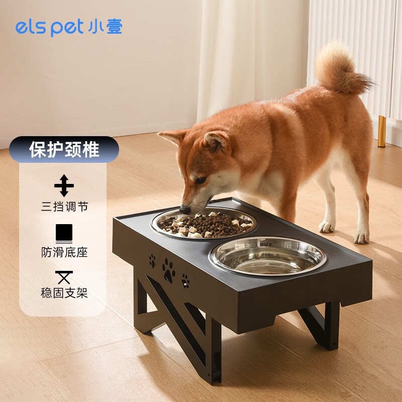 小壹狗碗大型犬双碗架狗狗饭盆宠物饭桌不锈钢狗盆宠物碗 黑色超大号