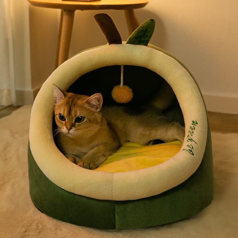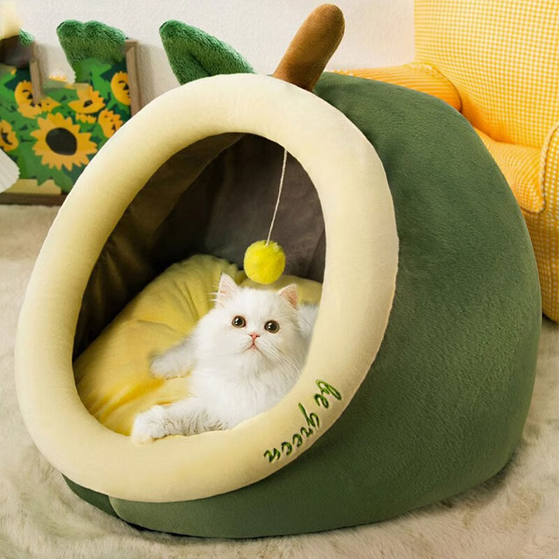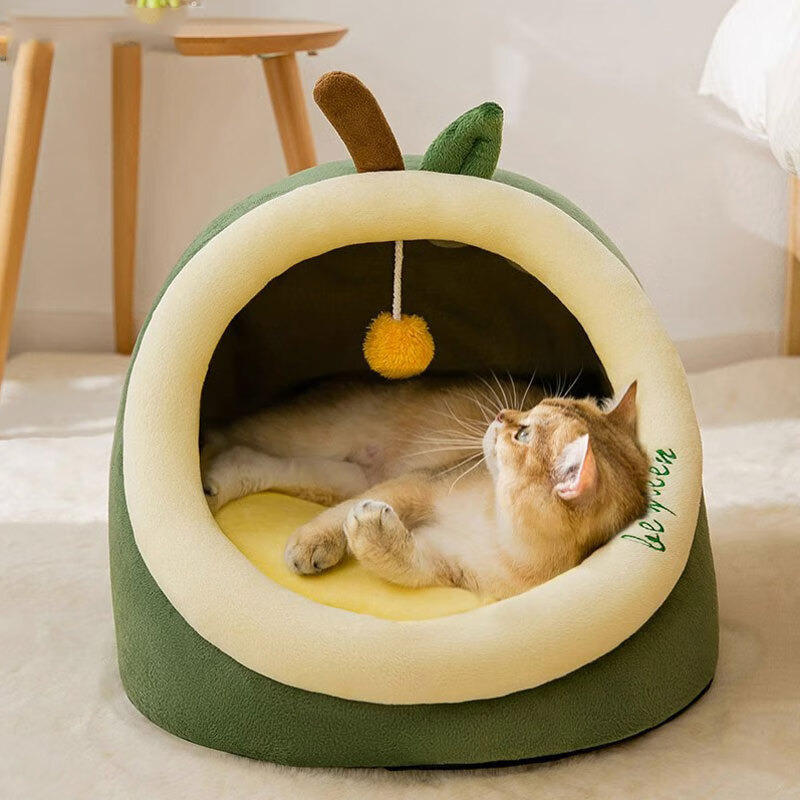 猫米猫窝四季通用半封闭式猫狗窝垫网红幼猫猫床冬季保暖猫咪屋神经猫 牛油果【升级款】 S码【7斤内猫5斤内狗】