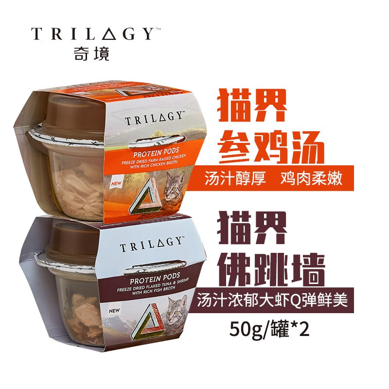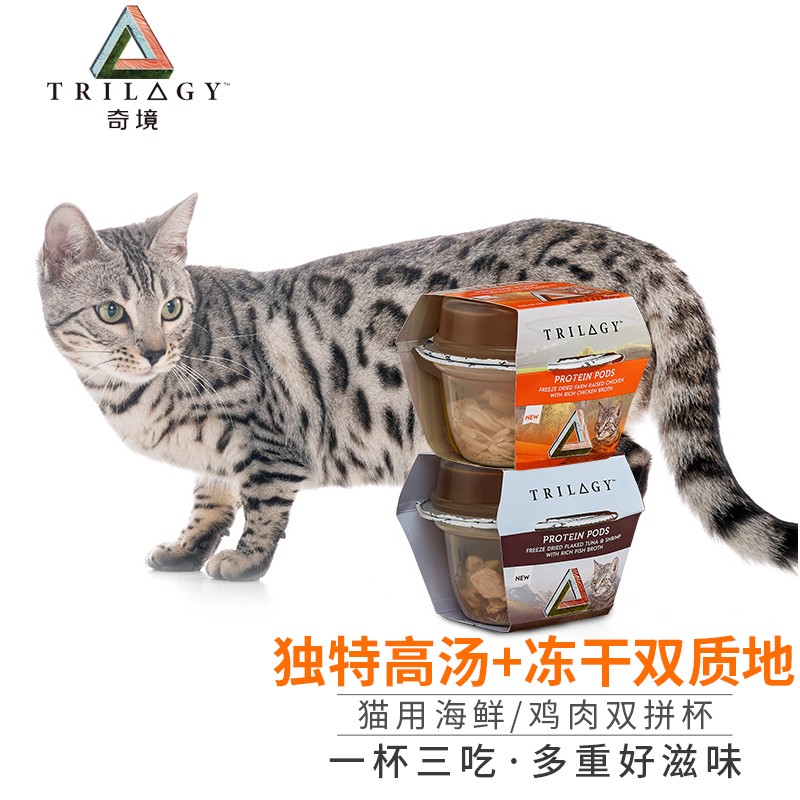 【临期不退换】奇境(Trilogy)猫零食罐头双拼杯 佛跳墙进口冻干猫粮 幼猫罐头高汤鱼虾成猫湿粮 现有口味混拼50*6组【22年3月13到期】