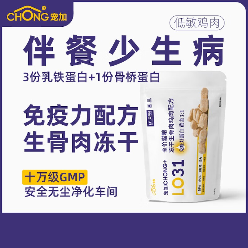 宠加未来星球【宠加冻干】OPN乳铁蛋白免疫力配方CHONG LO31冻干生骨肉猫粮 30g 1包装 (体验无压力)