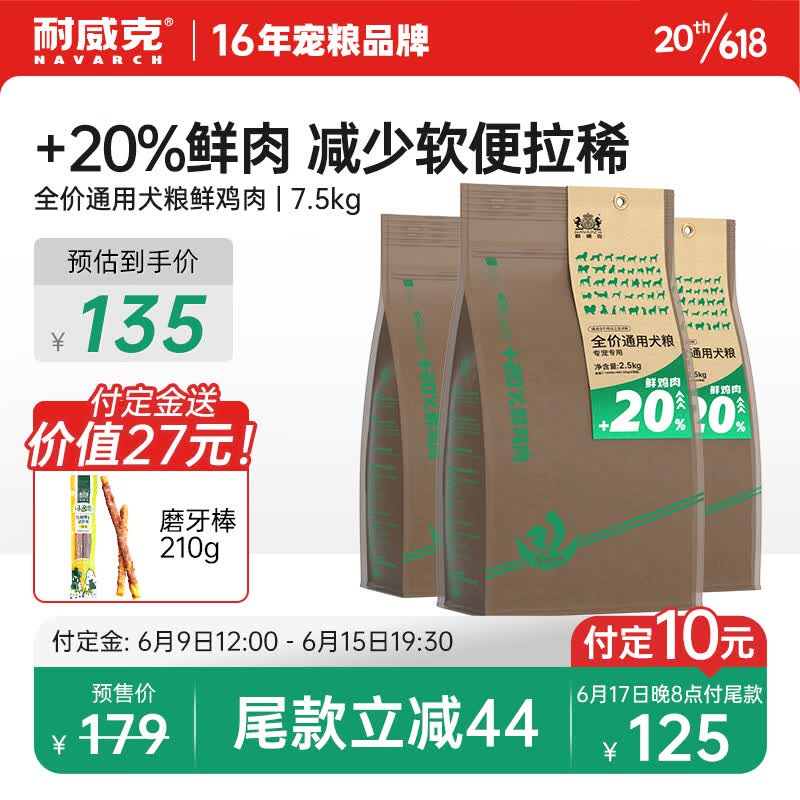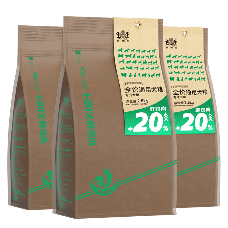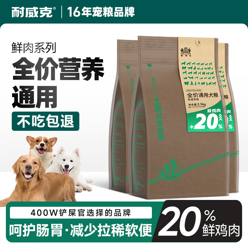 耐威克20%鲜肉升级款通用成犬狗粮7.5kg 泰迪金毛小型犬中大型犬通用