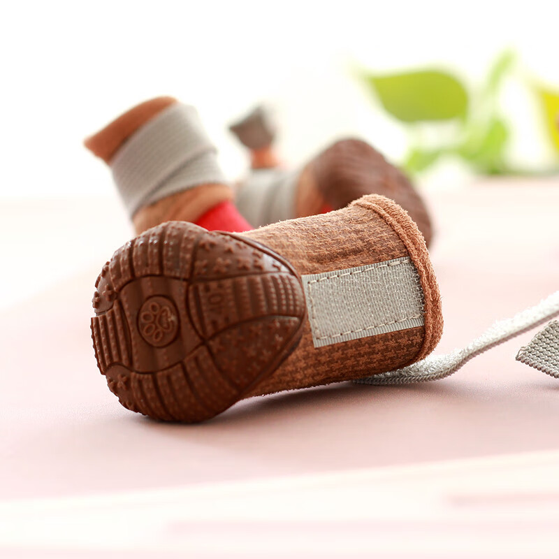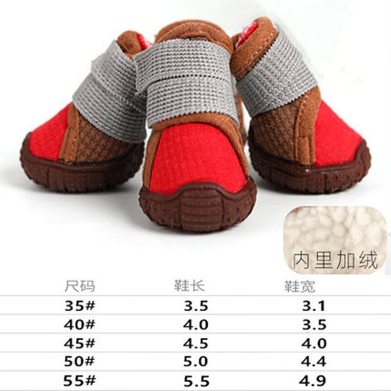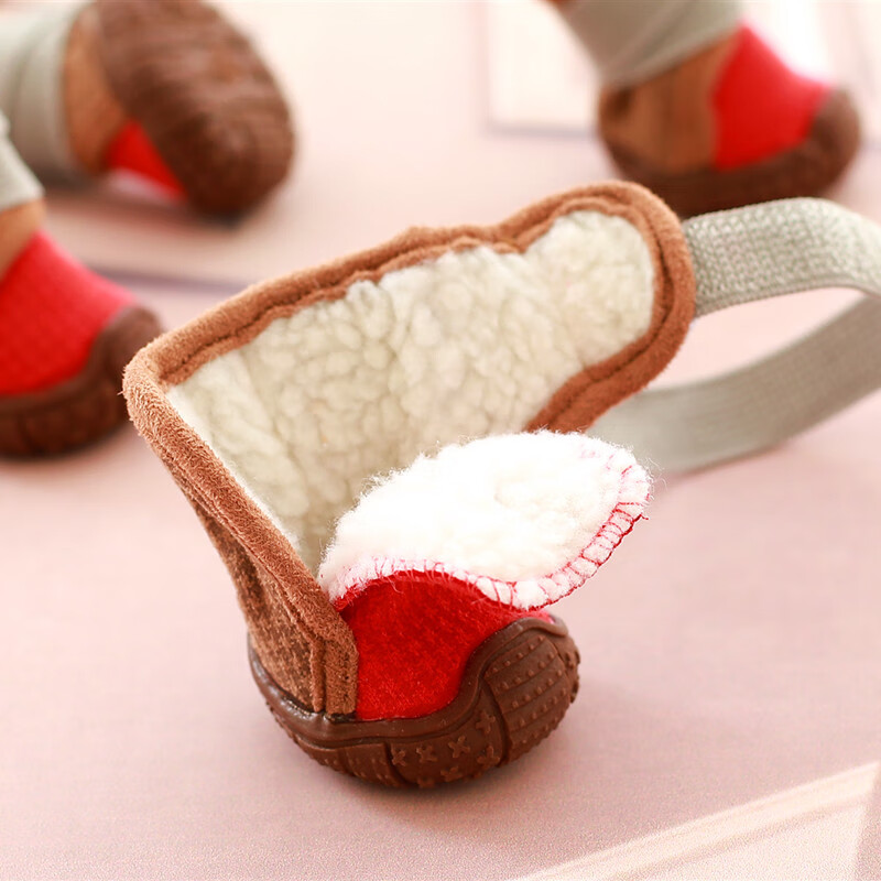珊野 泰迪鞋一套4只狗狗鞋子冬季棉鞋秋冬比熊小型犬宠物狗鞋不易掉 保暖红 1号(35#建议2-5斤)
