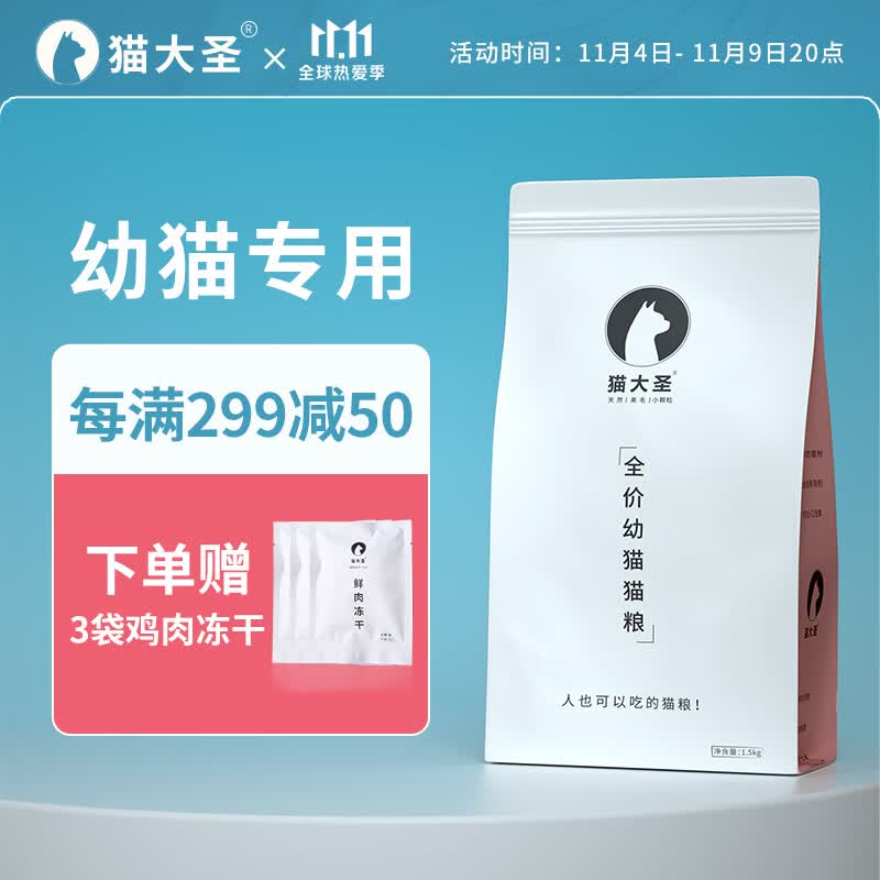 猫大圣幼猫猫粮1-12月奶糕小奶猫天然专用粮增肥发腮哺乳期孕猫鲜肉粮1.5kg 【鲜鸡肉配方】幼猫专用猫粮1.5kg