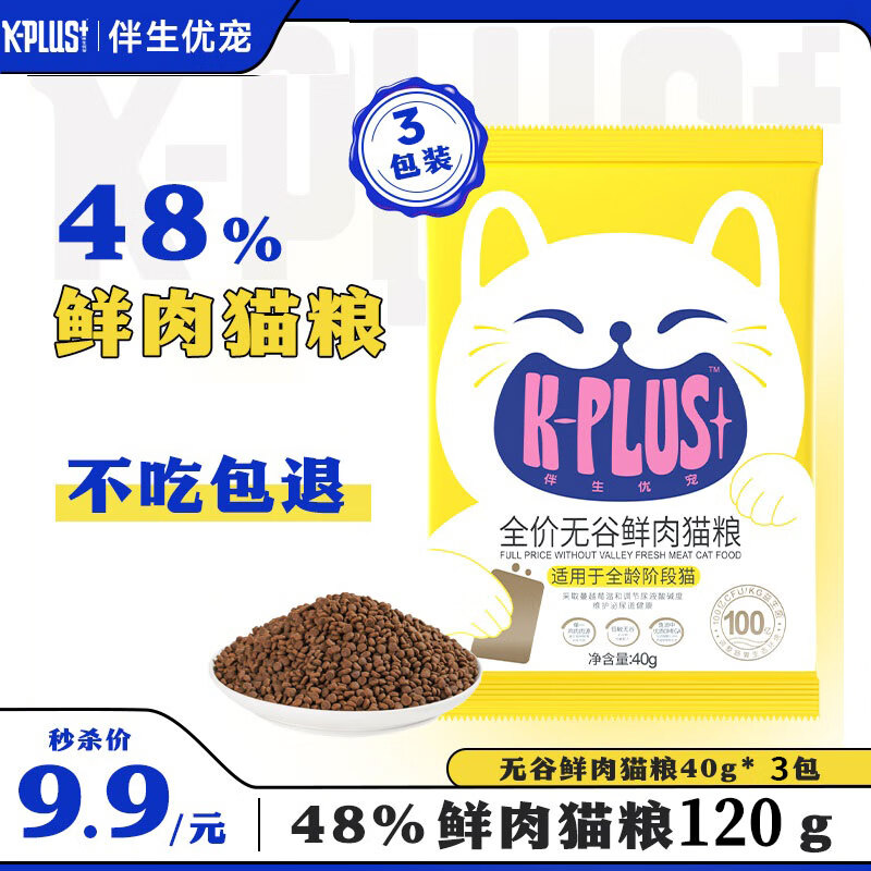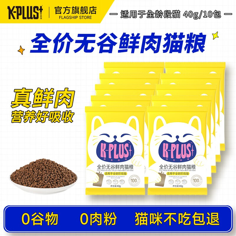 K-PLUS 鲜肉猫粮全阶段粮成猫幼猫kplus全价无谷猫干粮主食1.5kg 全龄段鲜肉猫粮试吃装400g