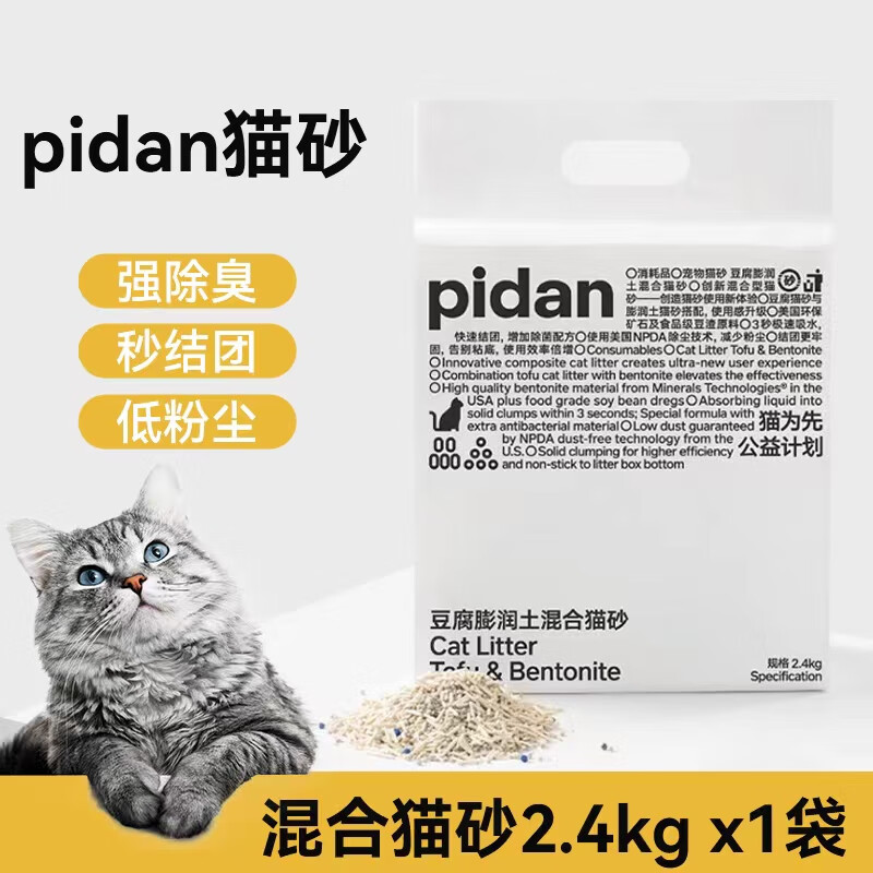 pidan皮蛋猫砂经典混合猫砂无尘豆腐砂膨润土砂混合除臭宠物猫咪用品 1袋【2.4KG*1袋】