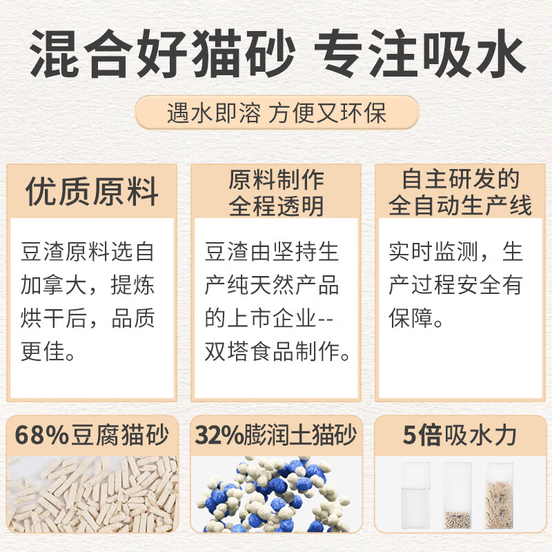 猫和友豆腐猫砂大包猫砂膨润土混合砂猫砂除臭无尘留香猫舍专用猫沙 2.5kg(试用装) 升级款1.5mm混合猫砂(省砂40%)