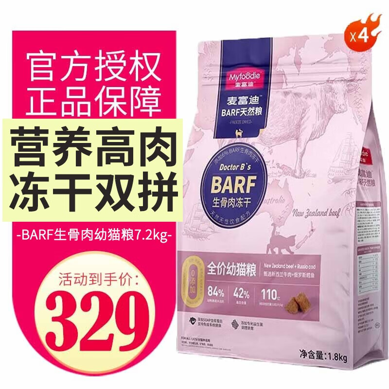麦富迪(Myfoodie)barf 猫粮生骨肉冻干双拼粮鲜肉无谷营养通用粮 牛肉鳕鱼幼猫7.2kg