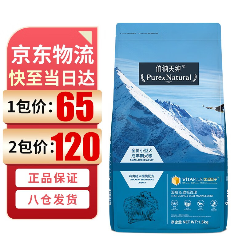 伯纳天纯狗粮小型犬成犬幼犬泰迪贵宾雪纳瑞美毛缓解泪痕天然1.5kg 经典全价小型成犬粮1.5kg