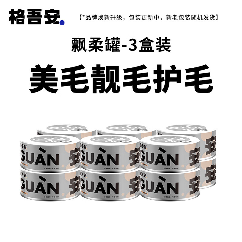 格吾安安系列飘柔罐全价猫罐头美毛主食罐4罐*3盒【实发3盒(含附件)】