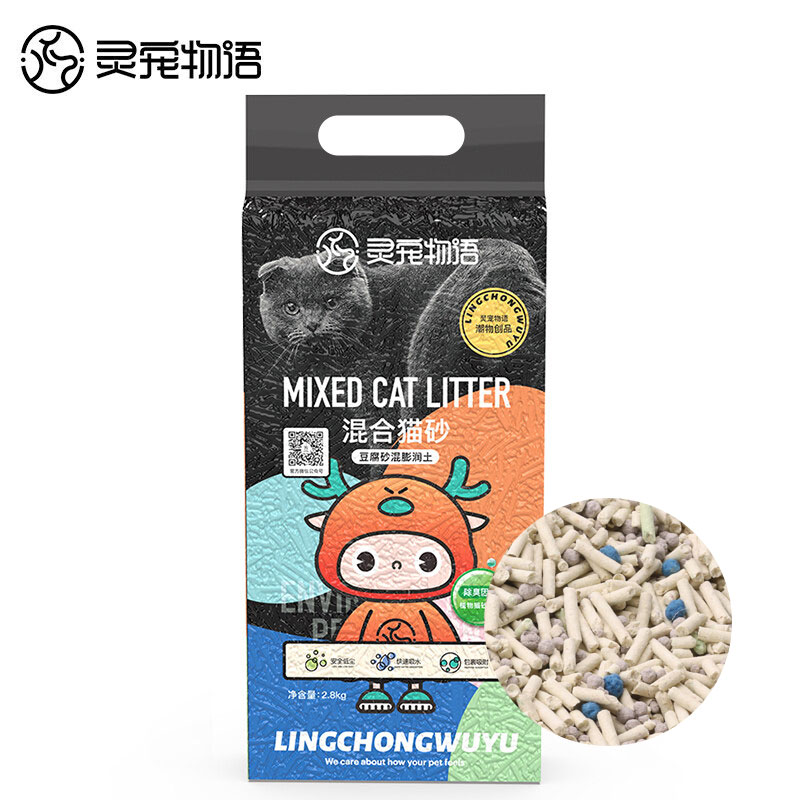 灵宠物语 猫砂4合1混合猫砂豆腐膨润土混合猫砂三重高效结团吸水除臭无尘猫咪用品 2.8kg