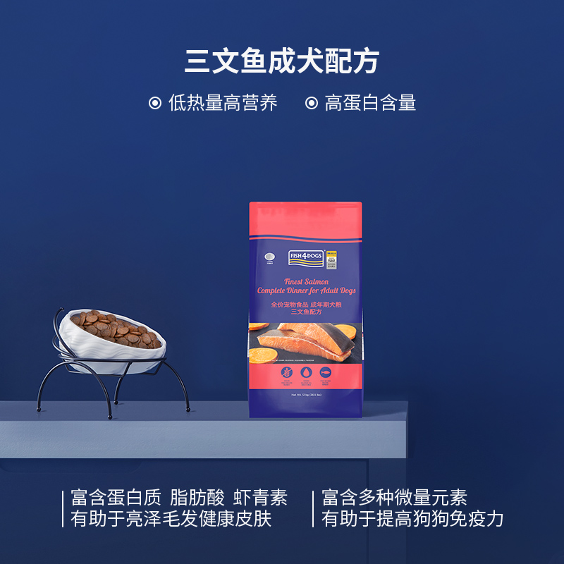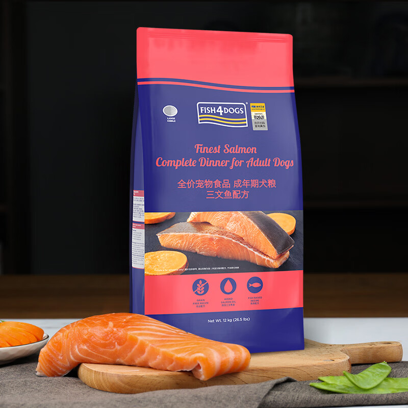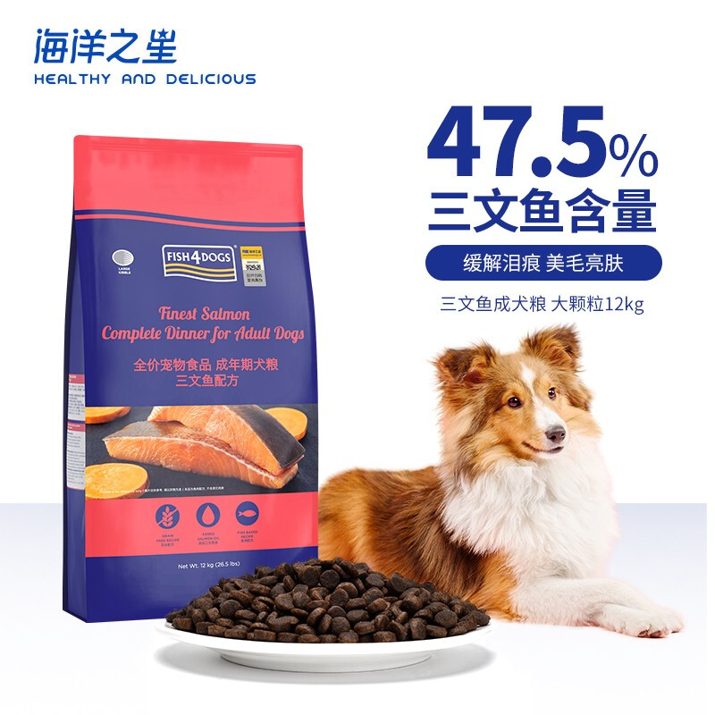 海洋之星(fish4dogs)天然无谷鱼油美毛全期犬粮泰迪比熊柯基金毛拉布拉多萨摩狗粮 三文鱼成犬粮12kg(大颗粒)
