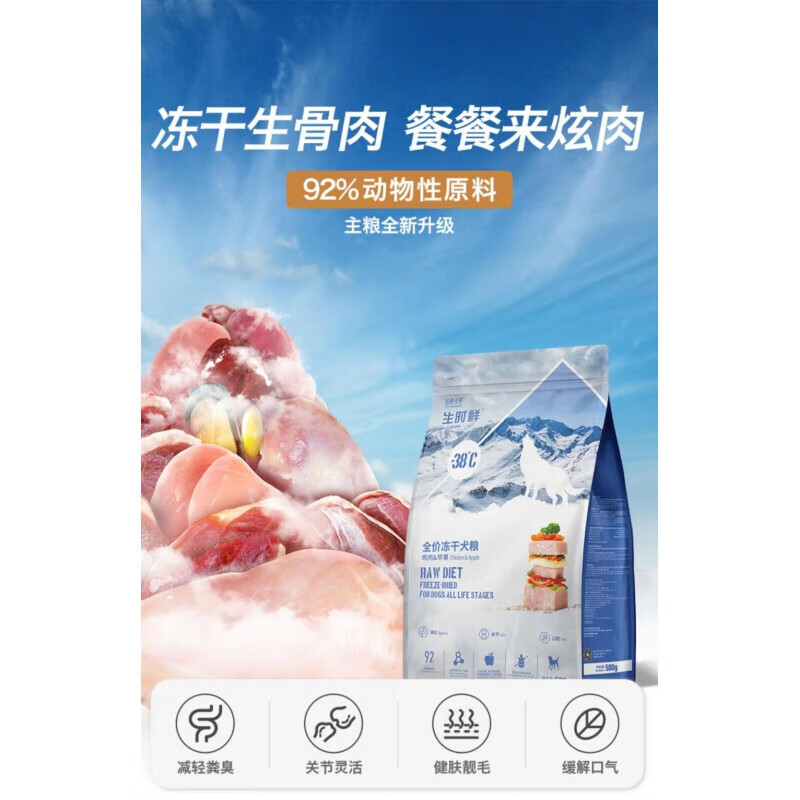 伯纳天纯生时鲜主食冻干狗粮500g成犬幼犬生骨肉冻干零食泰迪比熊 鸡肉苹果味 500g