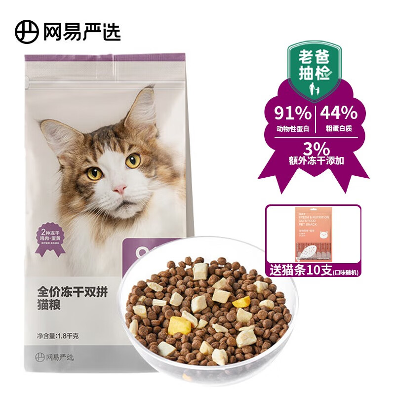 网易严选 全价冻干双拼猫粮 居家宠物主粮幼猫成猫冻干粮全价无谷粮 全价冻干双拼猫粮1.8kg