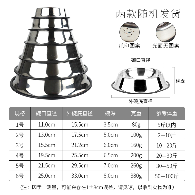 不锈钢狗狗碗 宠物碗 单狗盆 防滑宠物食具餐具 猫狗饭碗金毛食盆 XXS号(体重5斤以下适合) 防滑防打翻