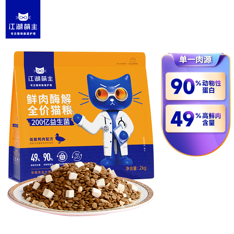 江湖萌主鲜肉酶解全价猫粮低敏鸭肉配方2kg幼猫成猫无谷冻干天然粮