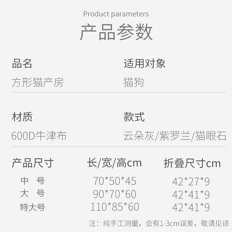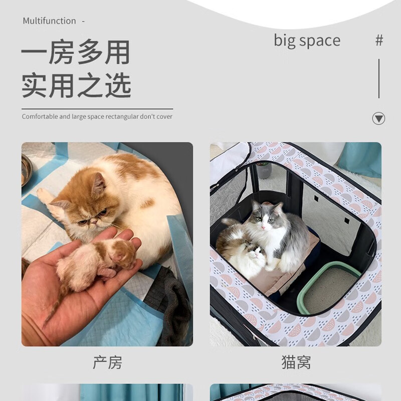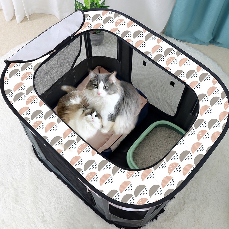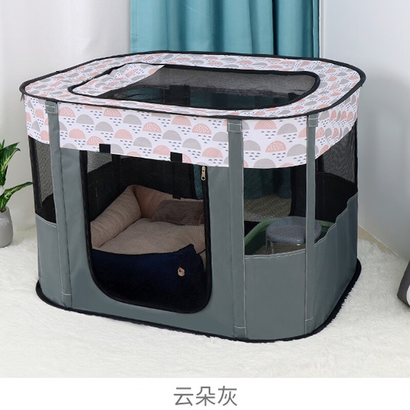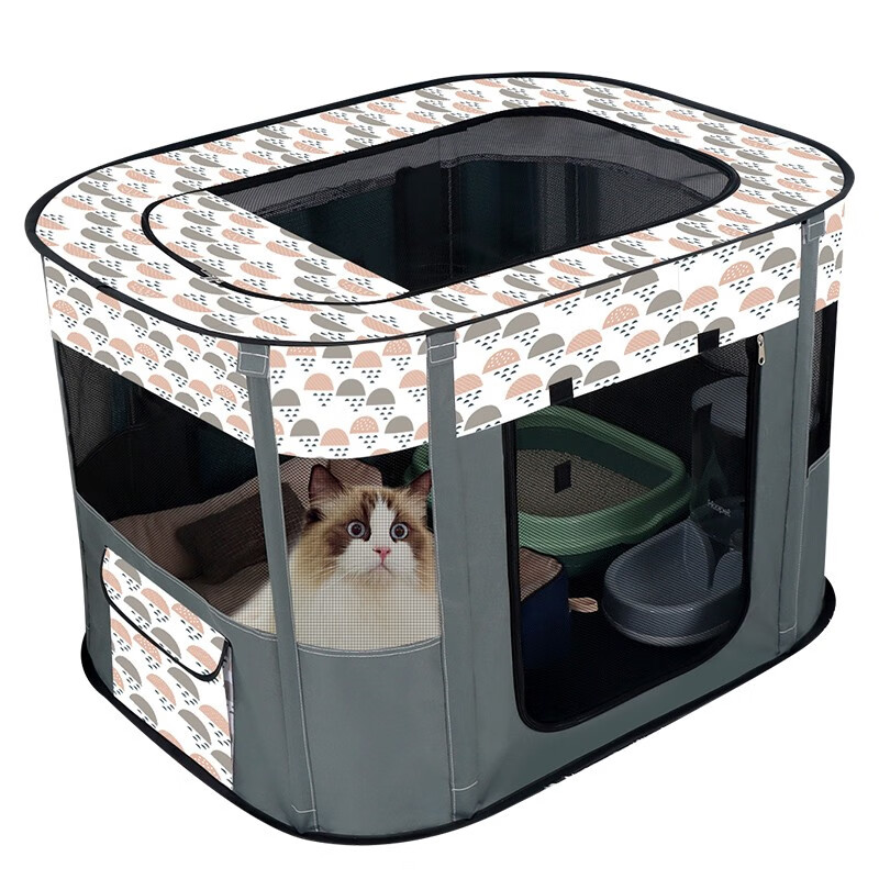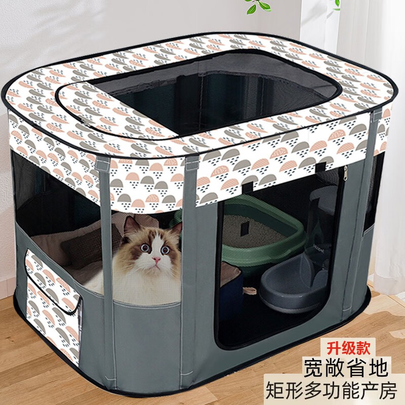 憨憨乐园猫产房长方形猫咪生产用品怀孕待产封闭式宠物通用猫狗窝猫帐篷 云朵灰 中号【70*50*45CM】适合一只猫妈 多只猫宝