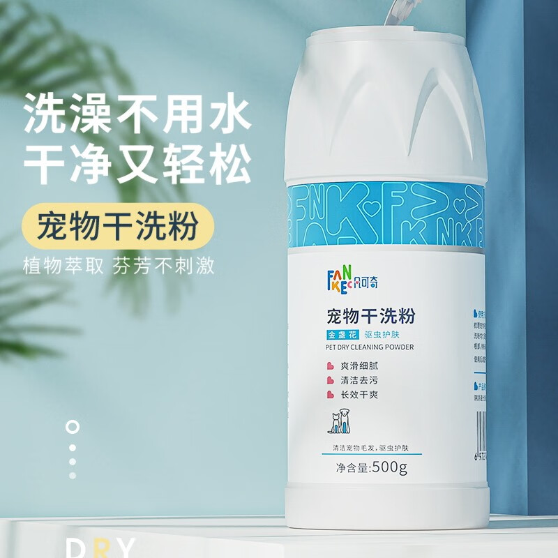 凡可奇 宠物干洗粉500g沐浴露幼犬狗狗猫咪洗澡免洗爽身粉山茶花清香
