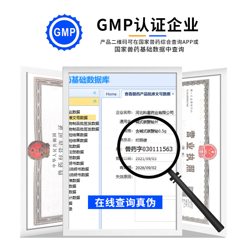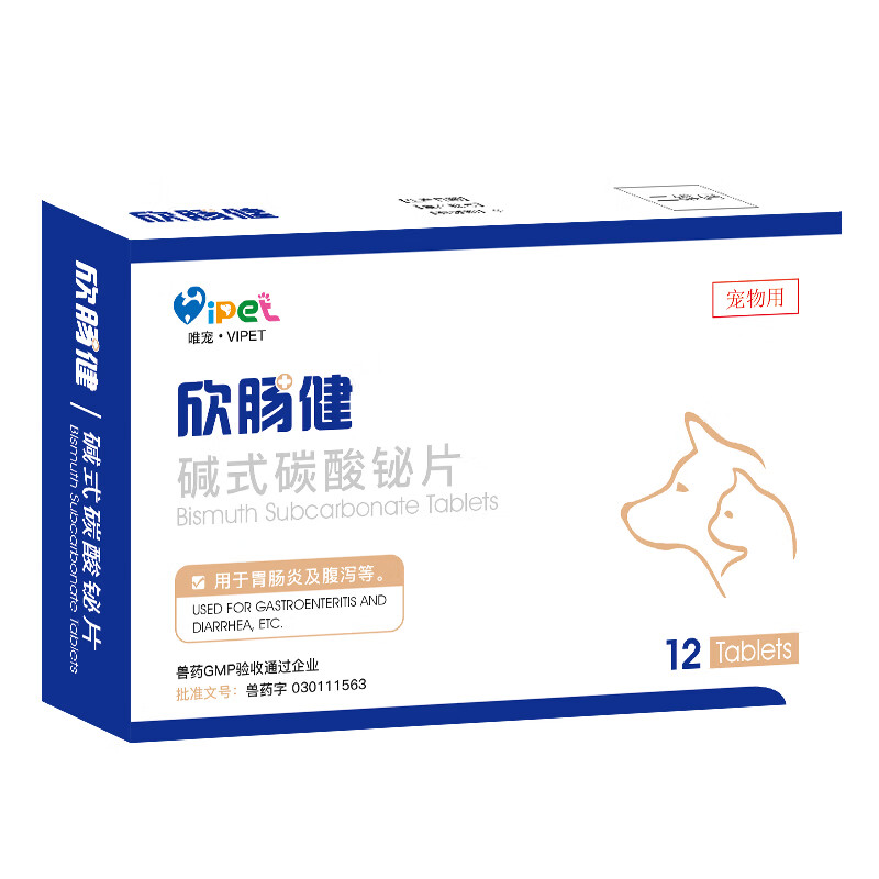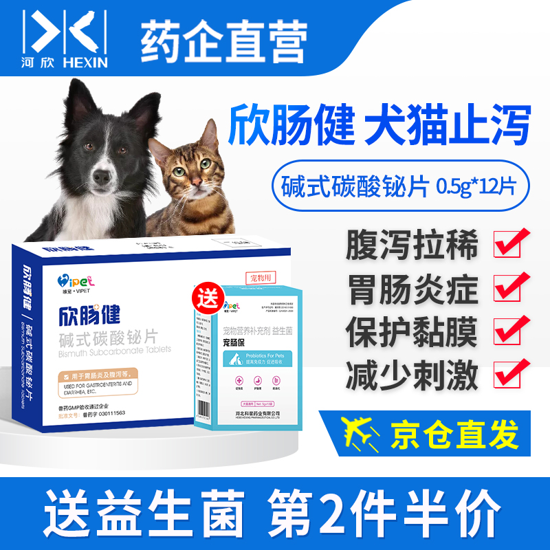 【7仓直发】碱式碳酸铋片宠物止泻药狗狗猫咪腹泻拉稀胃肠炎症拉肚子保护肠胃黏膜减少刺激河欣欣肠健 1盒装 0.5g*12片/盒