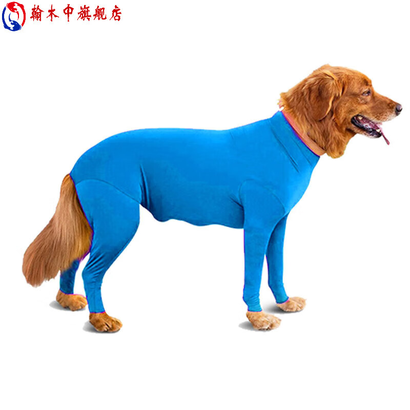 金毛衣服防掉毛 中大型犬狗狗衣服柴犬猫咪金毛拉布拉多薄款弹力宠物四脚衣防掉毛 湖蓝色性感衣 S胸围50.8 背长58.4