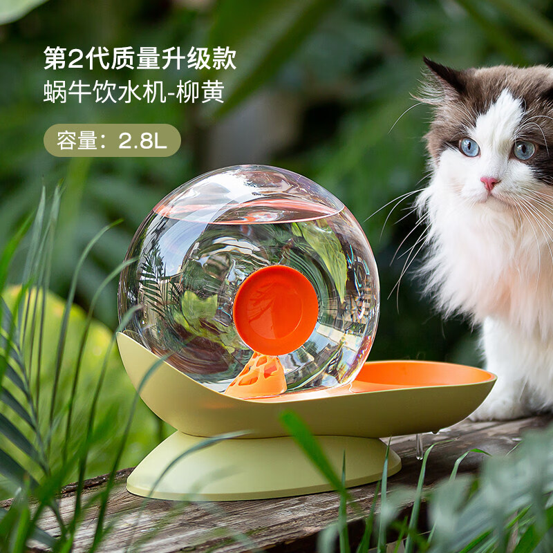 OIMG蜗牛猫咪饮水机不插电流动宠物喝水自动喂水器防打翻狗狗水盆水碗 蜗牛二代-绿橙(自带一片滤芯)