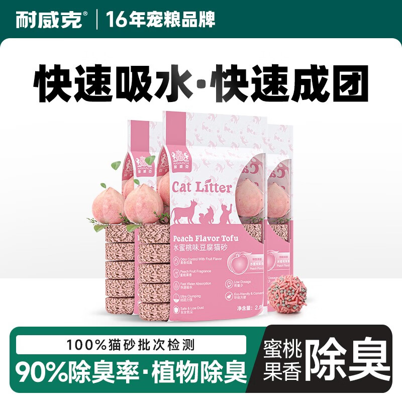 耐威克 水蜜桃豆腐猫砂成猫幼猫混合猫沙 去味除臭结团 可冲厕所 豆腐砂丨16.8斤