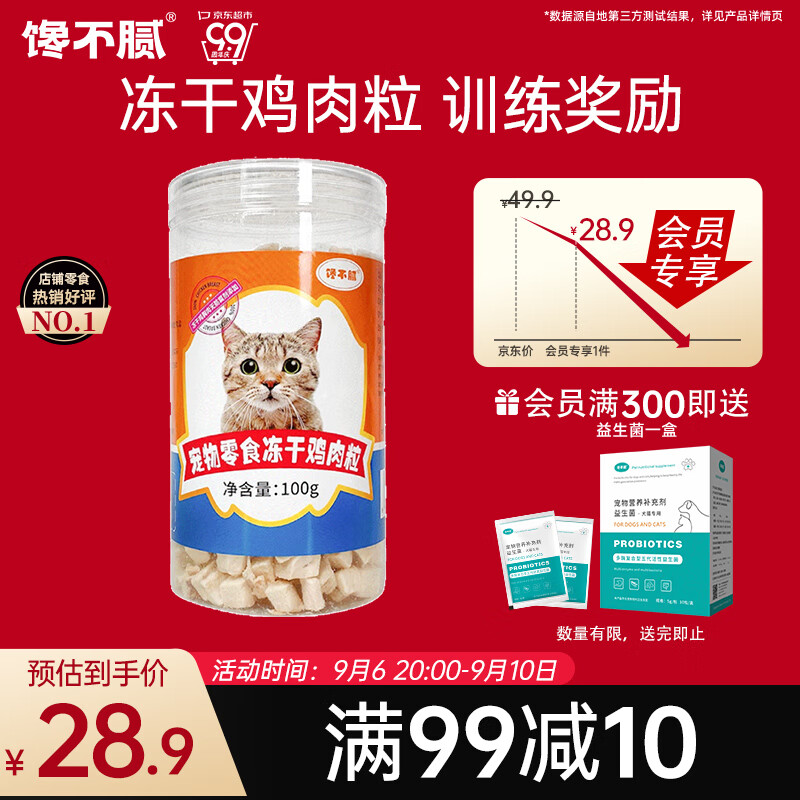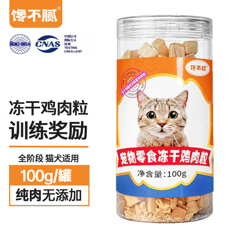 馋不腻冻干猫咪零食训练狗狗零食宠物蛋白鸡胸肉粒生骨肉猫粮100g/罐