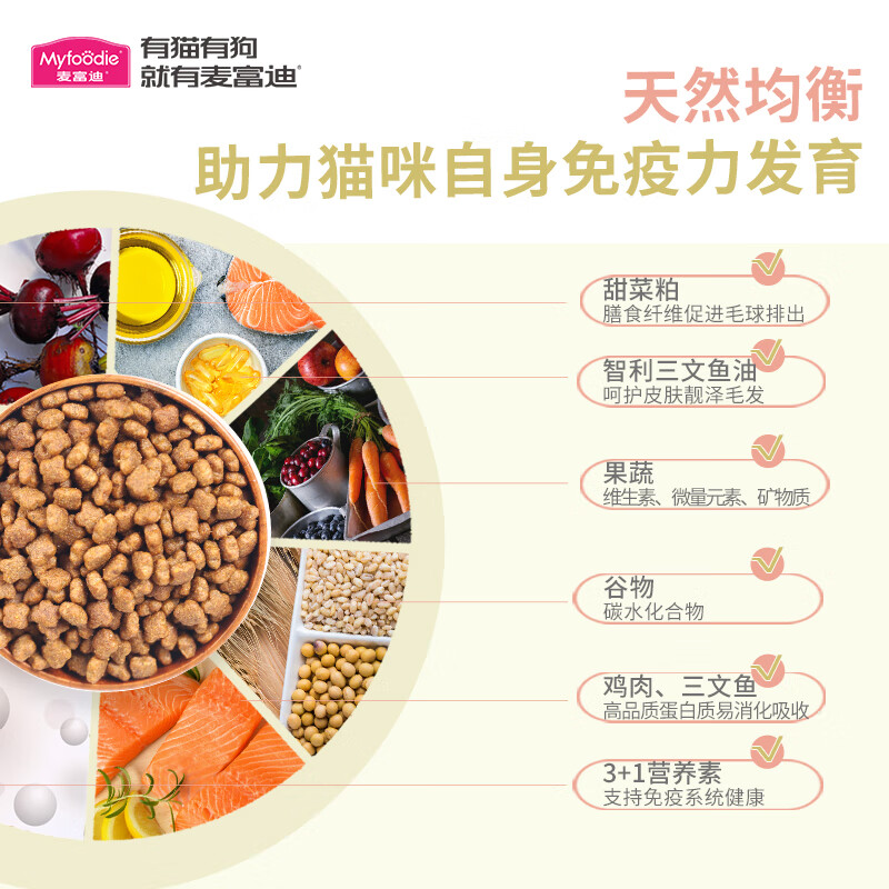 麦富迪猫粮 进口三文鱼油天然猫粮 全价猫粮美毛靓目通用型猫干粮猫粮 幼猫粮1.5kg