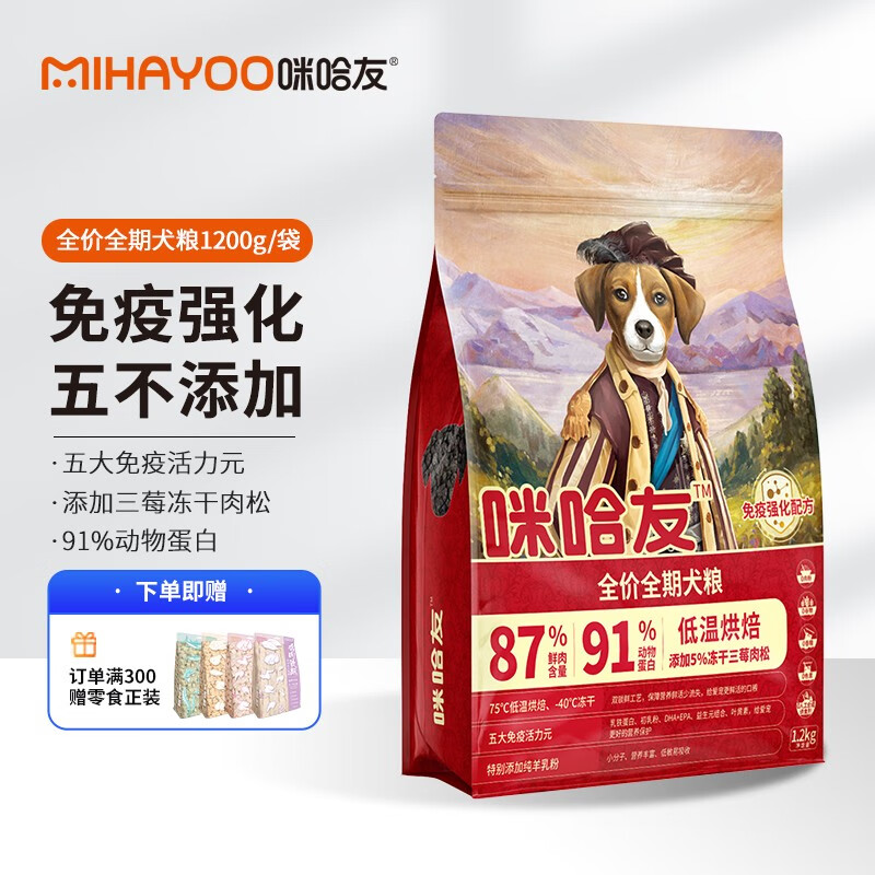 咪哈友狗粮成犬粮 幼犬老年狗粮 全价低温烘焙无谷物 大型犬金毛 免疫强化1200g