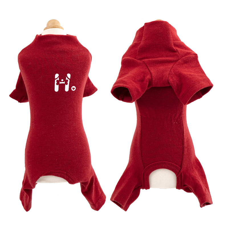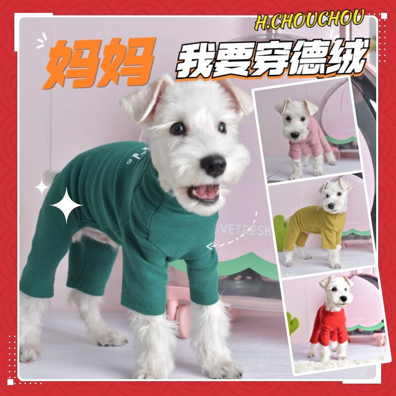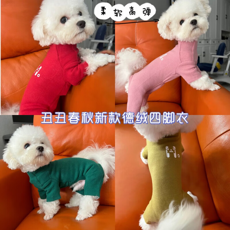 丑丑宠物衣服宠物秋冬母狗装公狗装3色四脚连体衣泰迪比熊狗衣服 字母款红色(母狗包肚款) 16