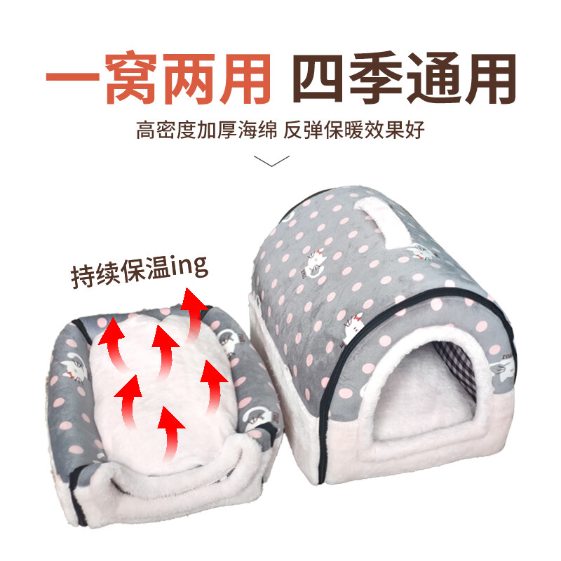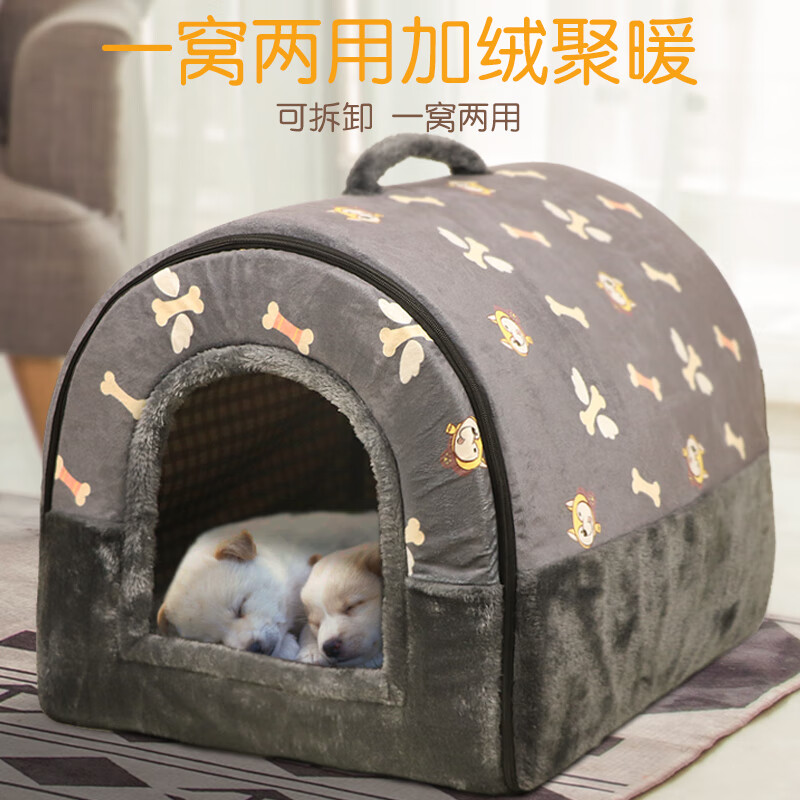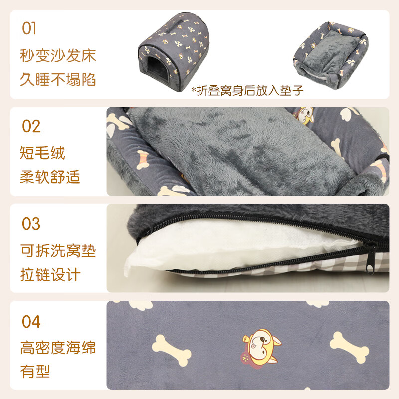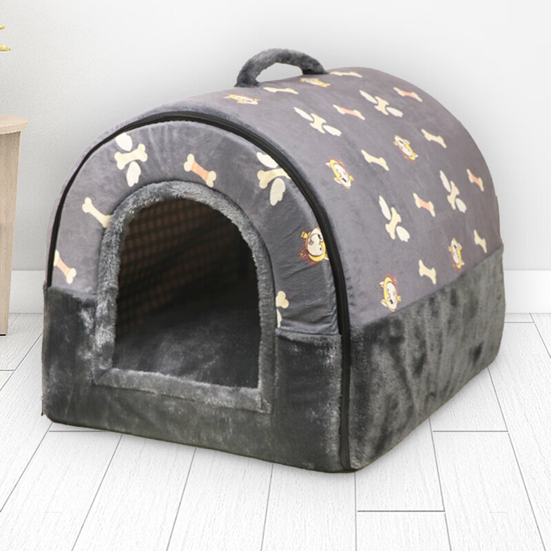 笼趣狗窝四季通用 可拆洗房子型宠物保暖毛绒猫窝 小型犬泰迪狗屋用品 灰色小汪(配套加绒垫子) S号37*30*30cm适合4斤以内