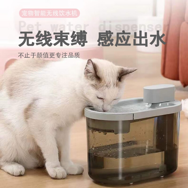 UOSO猫咪饮水机智能循环活水自动猫咪饮水器无线喂食感应宠物猫饮水机 不插电杀菌款-灰色