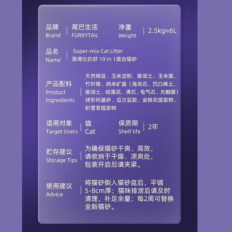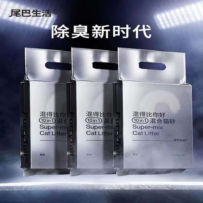 尾巴生活猫砂10in1混合猫砂无尘大袋豆腐膨润土纳米矿晶砂6L*3袋 混合砂2.5kg*3包