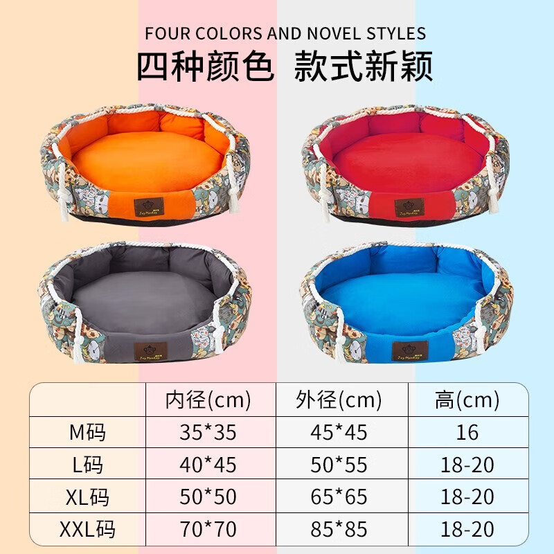狗窝【四季通用】冬季保暖可拆洗夏天狗床猫窝耐脏耐撕咬猫狗通用 灰色-可拆洗 L【适用于15斤以内的宠物】