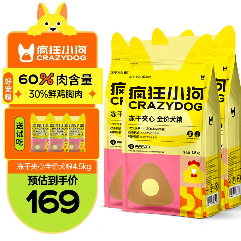疯狂小狗冻干夹心狗粮小型犬幼犬成犬泰迪比熊柯基金毛通用拼派全价狗粮 【冻干夹心】全犬种通用粮4.5kg
