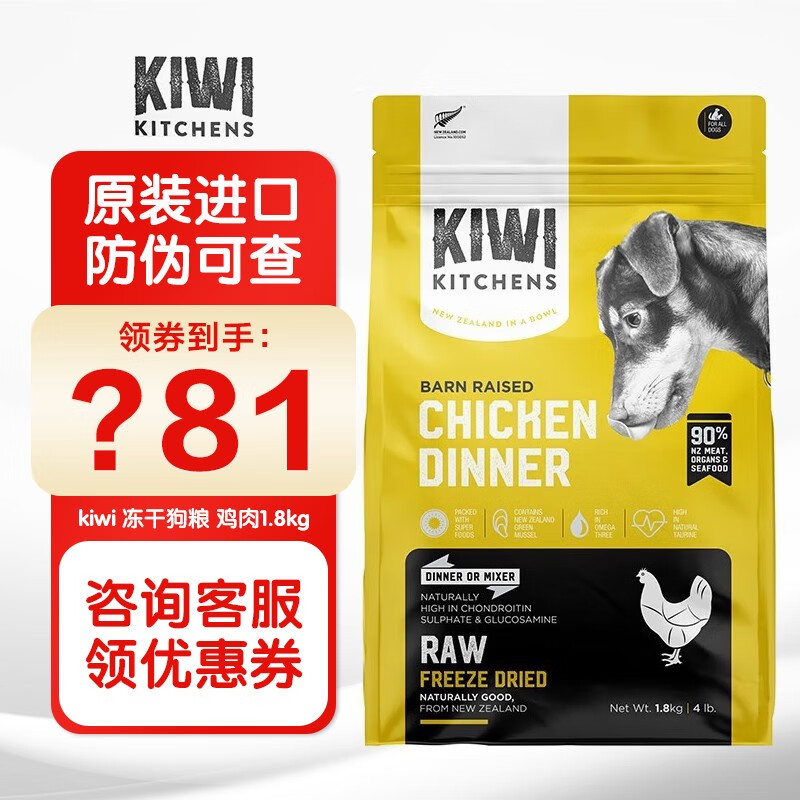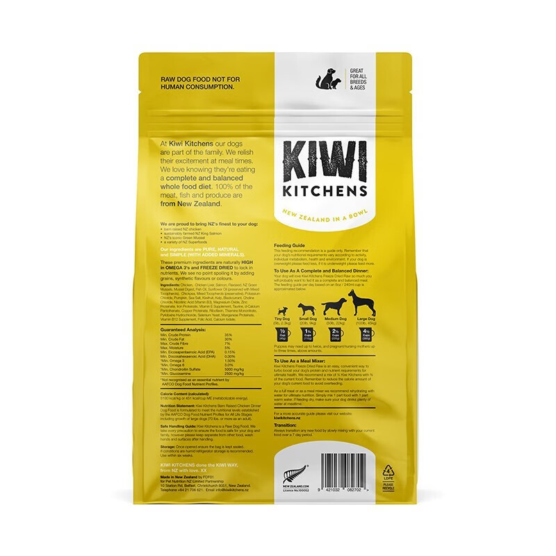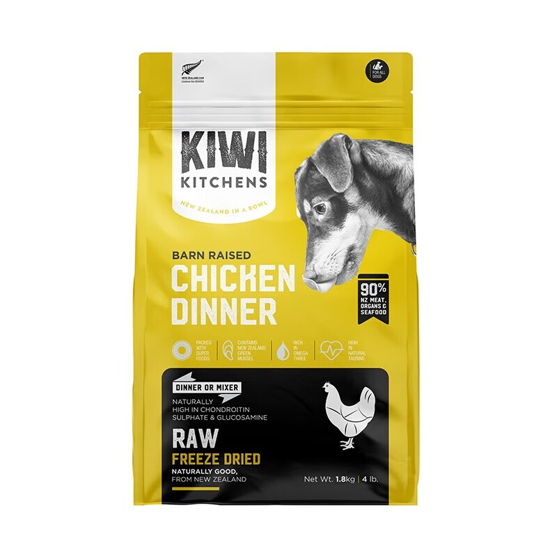 KIWI KITCHENS冻干狗粮 新西兰原装进口主粮 成犬幼犬通用型全价冻干犬粮 冻干鸡肉1.8kg