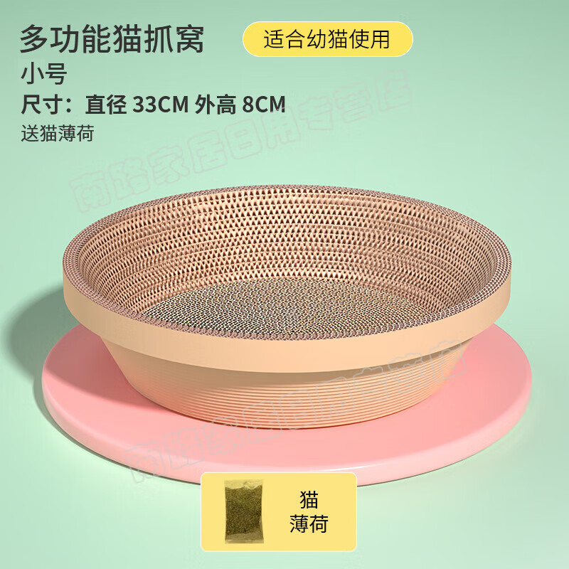 猫抓板窝耐磨不掉屑猫抓盆瓦楞纸猫窝猫抓板一体猫咪玩具用品耐爪 今日款中号直径33C/M(收藏