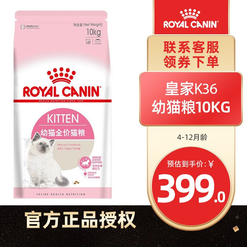 皇家猫粮K36 幼猫猫粮 通用粮 离乳期10kg整袋20斤装支持免疫系统 呵护肠道消化英短美短主粮
