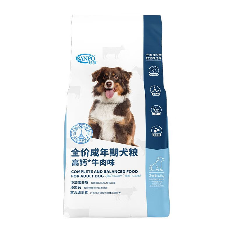 珍宝狗粮高钙牛肉成犬粮3斤30斤全价狗粮专用大袋通用狗粮 1.5kg(新老包装随机发)